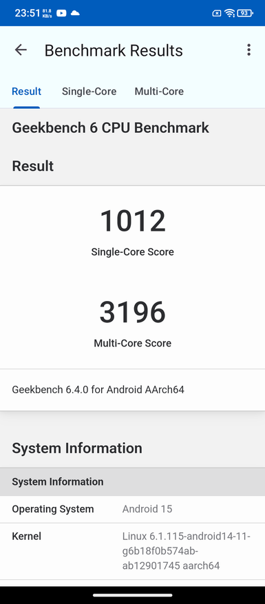 По тестам Geekbench результаты следующие. В одно- и многопоточном вариантах баллы 1012 и 3196. В тестах видеоядра OpenCL и Vulkan, цифры 2498 и 2494, соответственно.