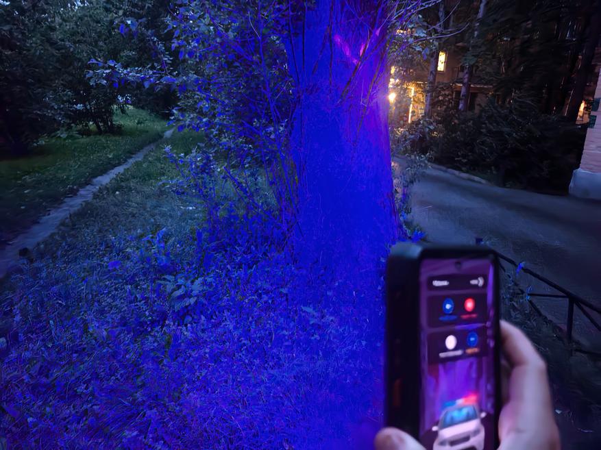 Дополнительно к работе фонаря есть стробоскопы. Если в фонаре используется 585 диодов, то в стробоскопы их 36 штук. Они попеременно мигают красным и синим оттенками.