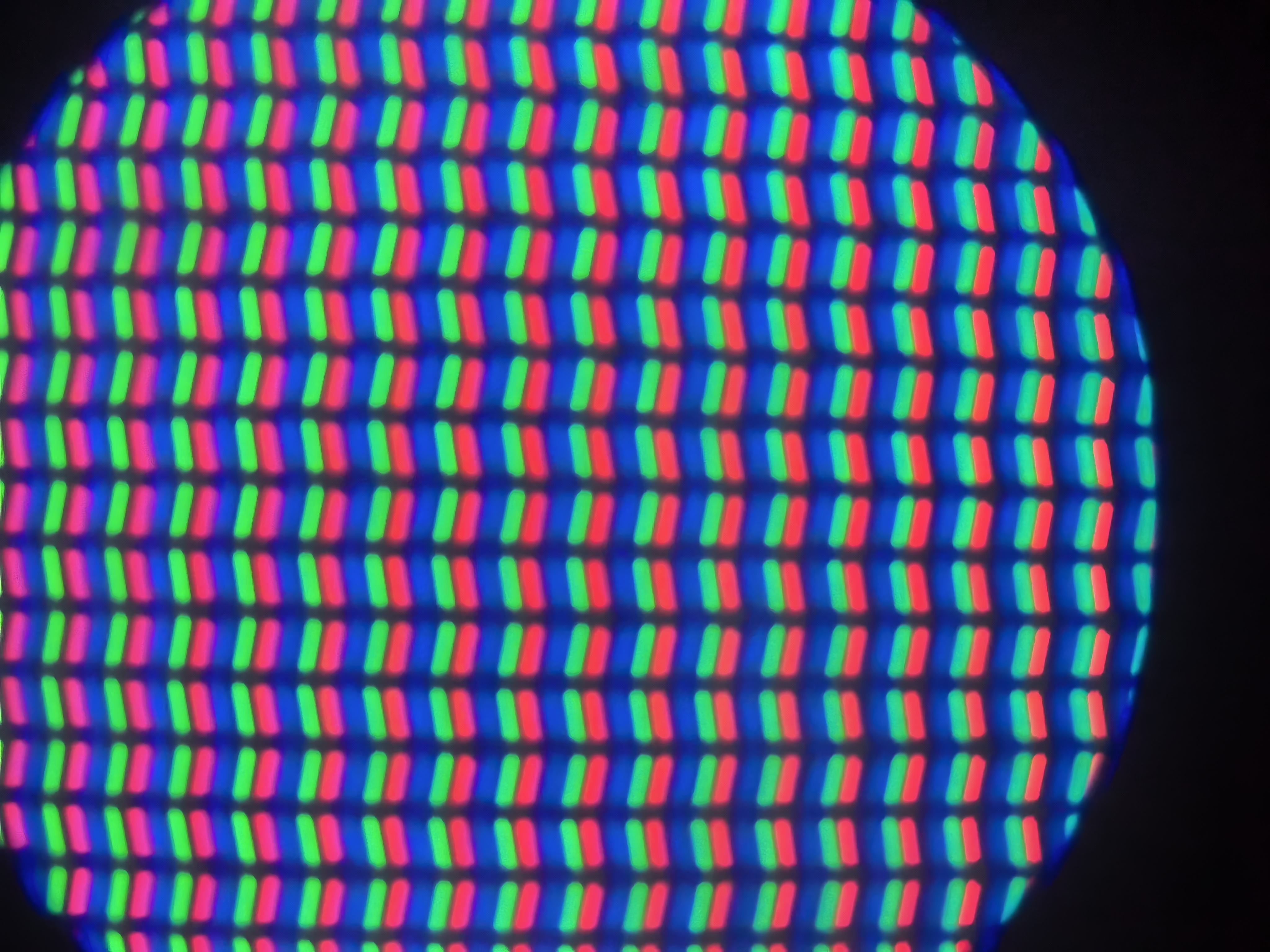 В характеристиках сказано, что яркость должна быть 600 нит в пике. В обычных условиях у меня получилось 322 Лк. На второй фотографии через микроскоп Svbony SV603 (обзор здесь) показал пиксели дисплея. Матрица у товара IPS. Для данного типа характерны три пикселя, зеленый, синий, красный.