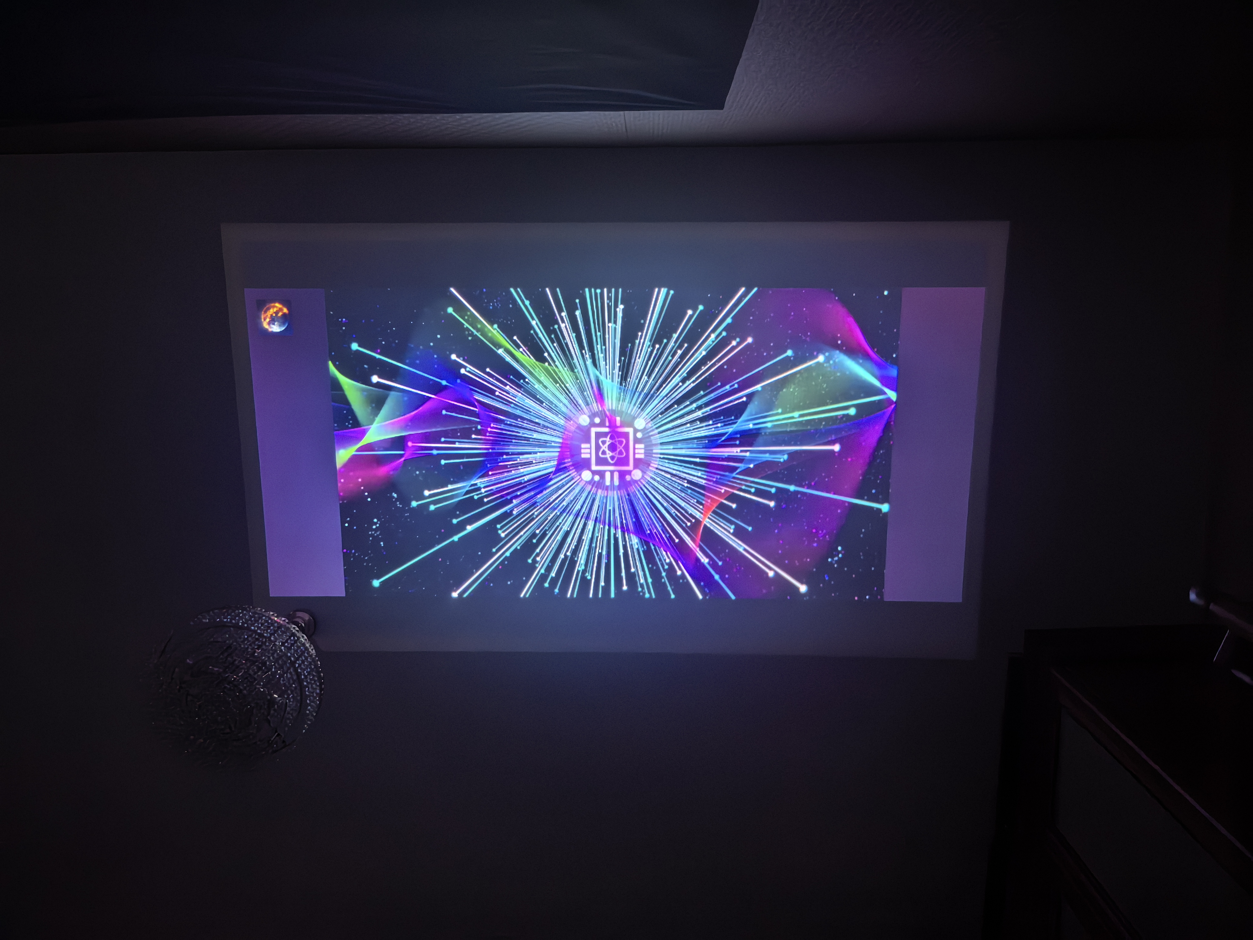 Пример проекции на потолок показал ниже. Я, честное слово, загляделся, даже не хотел продолжать оценивать ANSI Lumen. Как мне кажется, очень достойная фотография. Она передает то, что видно в полном объеме.