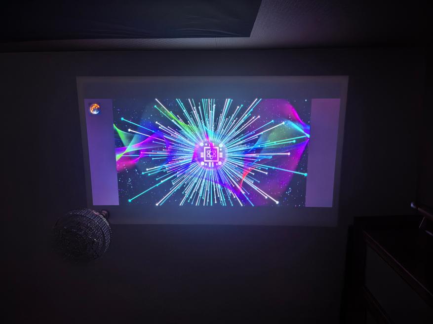 Проецируемое изображение ровное, четкое, проекция расположена выше уровня лампы (offset 100%), что значительно отличается от того, что есть в проекторах линейки 8849 Tank. Просто удобнее, когда картинка не уходит вниз, а смотрится выше. За эту опцию можно похвалить Ulefone. Польза от offset 100% ощущается во время использования и после сравнения с меньшим значением offset.