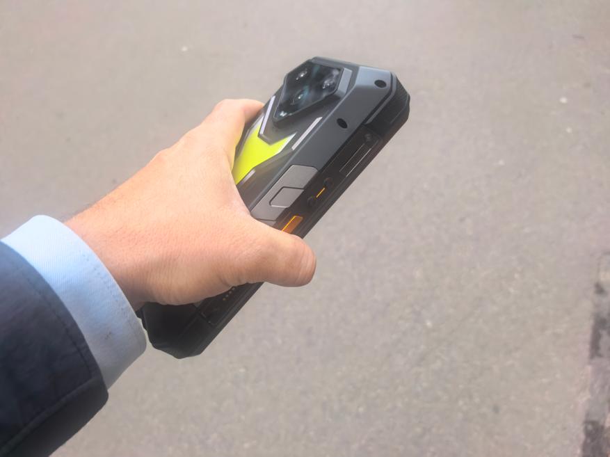 Проще сказать, чего нет в телефоне. Это телевика, оптического зума, оптической стабилизации. В обозреваемом нет опций, которые, если быть честным, никогда не выделялись своим качеством в классе защищённых моделей. Ulefone Armor 34 Pro не просто тяжёлый, он очень тяжёлый! Его вес составляет 825 г, и устройство может быть использовано в качестве аргумента закончить конфликт в лесу с медведем. Главное, договориться: мультики, там, показать через проекцию, в глаза посветить, чтобы выиграть время и убежать (в глаза людям и себе светить нельзя проектором! Этим можно навредить зрению), или, учитывая большой вес и дополнительную защиту из металла по бокам, расколоть орех.