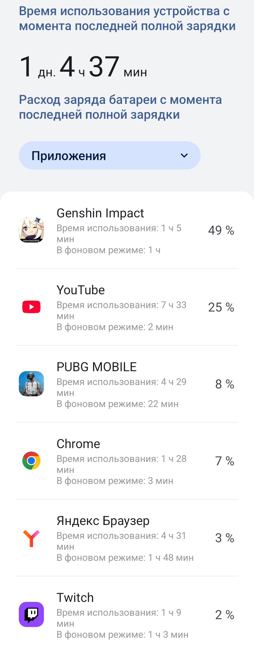 YouTube 340 минут на 24% яркости разряжают аккумулятор на 14%. Если аппроксимировать это на всю емкость, получится 40,5 часов просмотра сервиса.