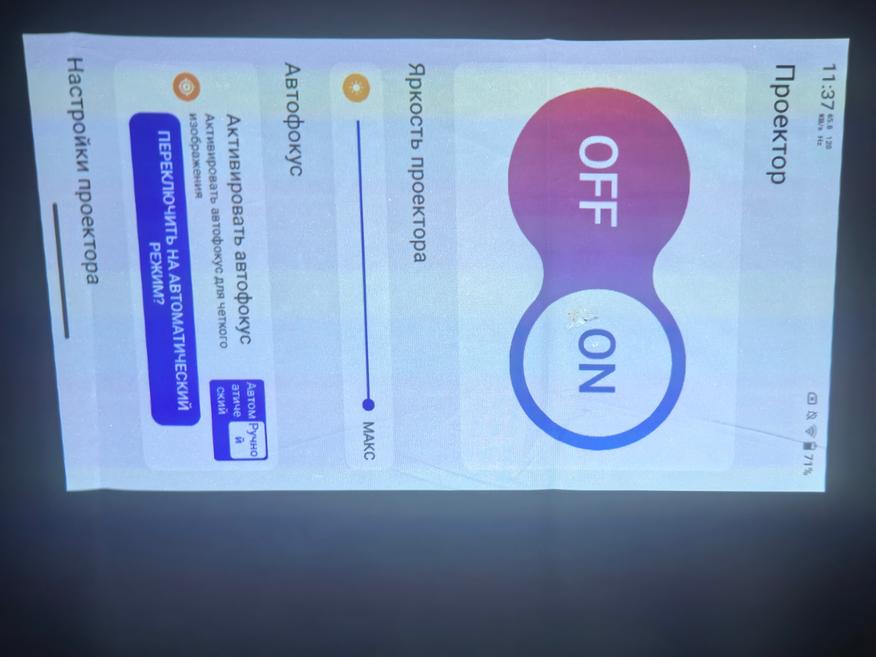 В проекторе мне понравилось наличие автофокусировки. В предыдущем телефоне с проектором она была ручной, что позиционировались производителем, как лучшее решение, чем автоматическая. Просто названая не очень хорошо работал, поэтому ручная казалась лучше. В обозреваемом автофокусировка, может показаться, так же работает плохо, но это не так. Для начала, надо расположить проектор (смартфон) на большом отдалении от поверхности проекции. В таком случае автофокус сработает, картинка станет четкой, а потом надо подвинуть проектор на нужное расстояние, но нельзя нарушать плоскость, иначе автофокусировка начнет работать заново. У меня была проблема, что на близком расстоянии была нечеткая картинка. После сделал, как описал выше, а потом аккуратно подвинул проектор ближе. Фювсе стало в фокусе. От качества картинки будет зависеть удовольствие использования проектора.