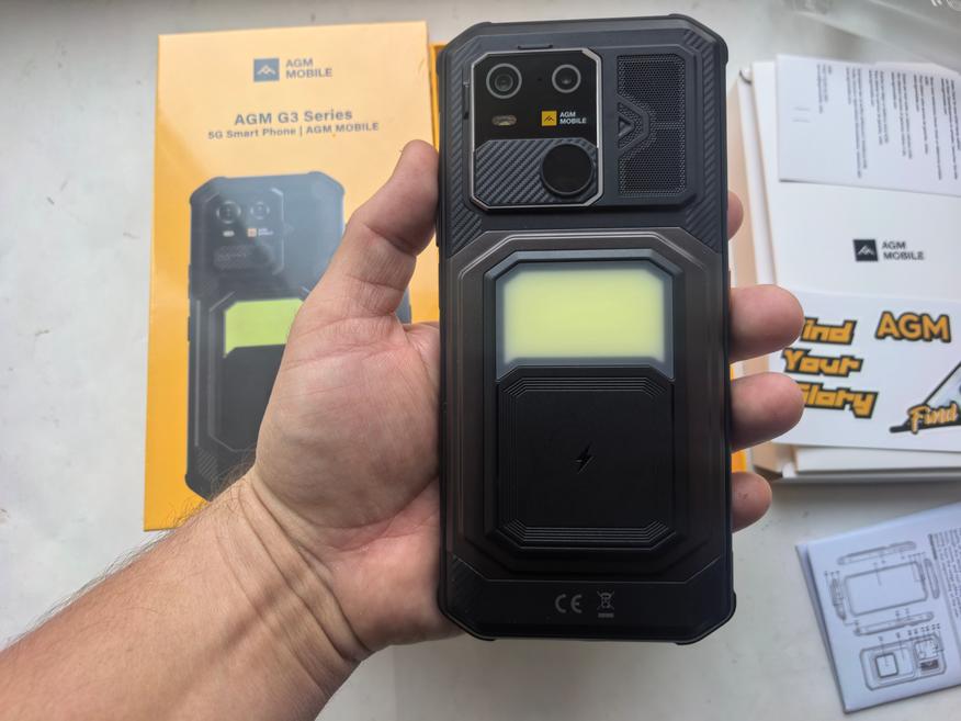 С другой стороны, внешний вид у AGM G3 необычный. Мне он нравится, я нахожу его гармоничным, даже учитывая некоторую несуразность фонаря. Кажется, что его можно закрыть или убрать с задней стенки. Это выделяет устройство из череды других защищенных. Для непривыкших пользователей толщина в 1,6 см будет казаться большой, но она стала результатом возможности пользоваться смартфоном долгое время.