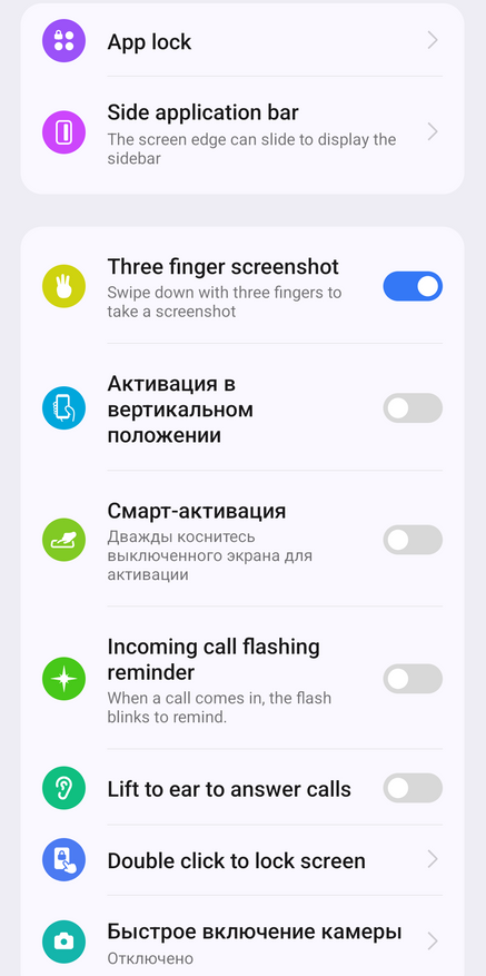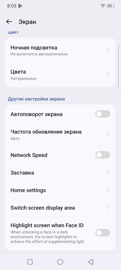 «Автояркость» присутствует и работает она хорошо. Можно поменять частоту обновления сенсорного слоя на 120Гц вместо режимов «Авто» и «60Гц».