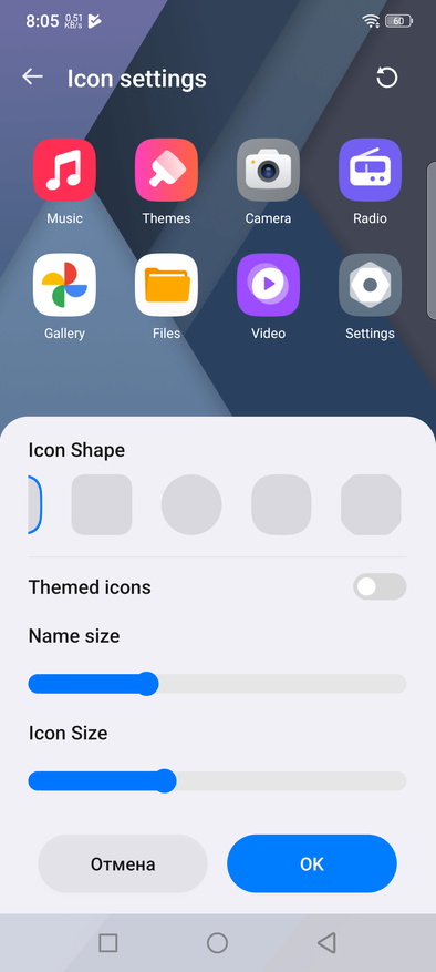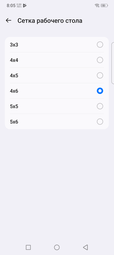 Можно пробуждать экран по двум касаниям, как и у других моделях. Можно менять не только количество видимых приложений в ряду, но и формк самих иконок.