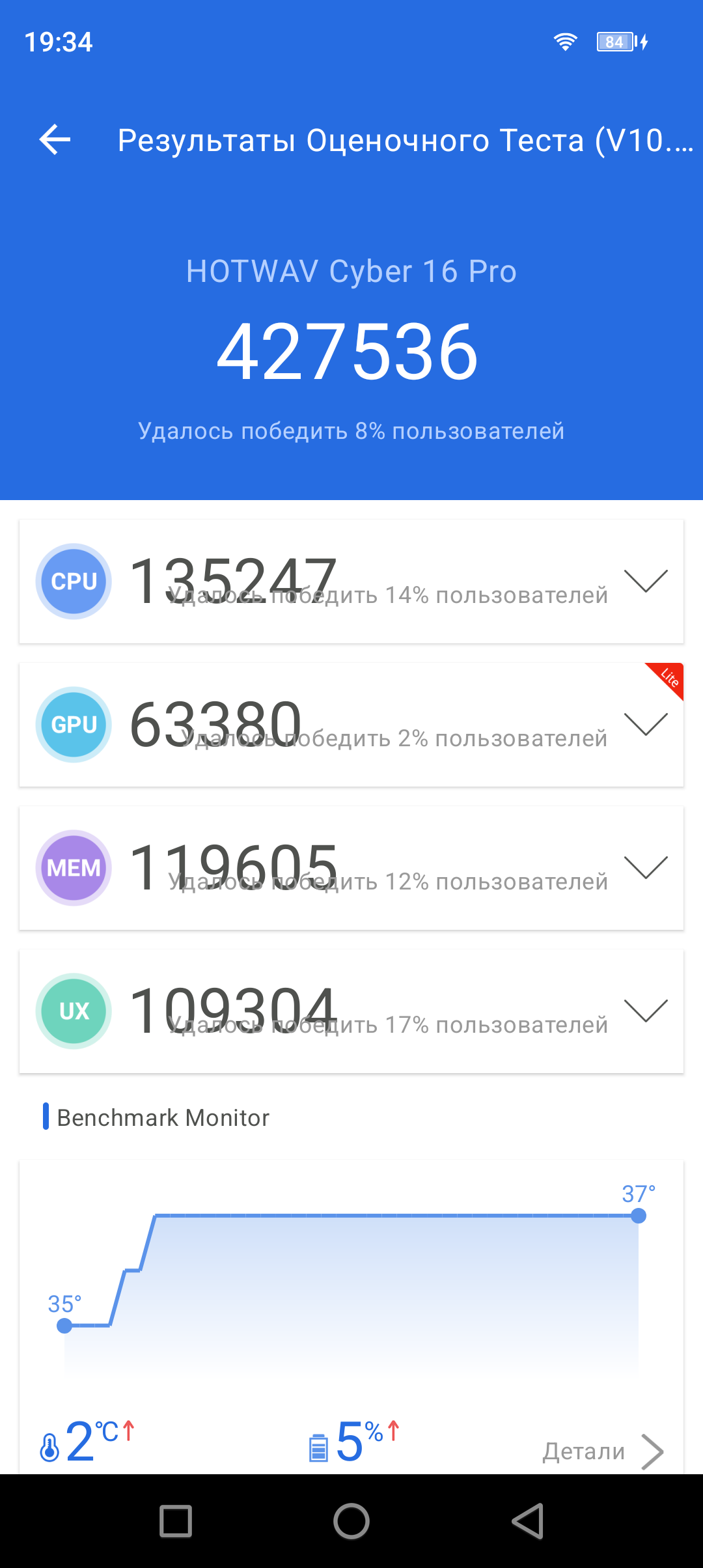 Чуть ниже приведу другие тесты. Сравнивая с Hotwav Cyber 15 особой разницы по производительности нет. Результаты +/- примерно одинаковые.