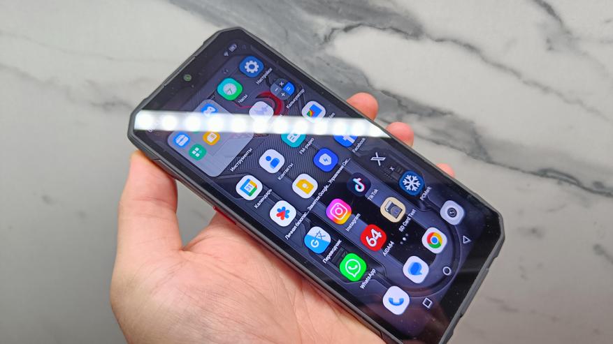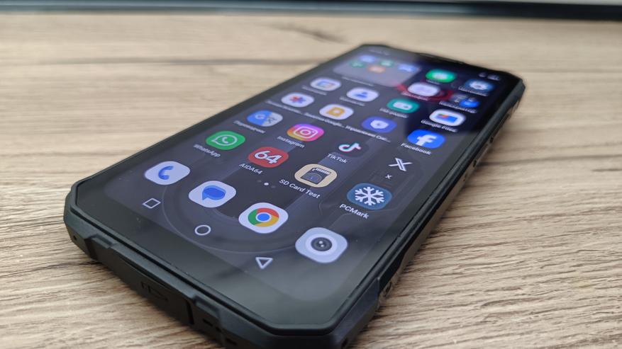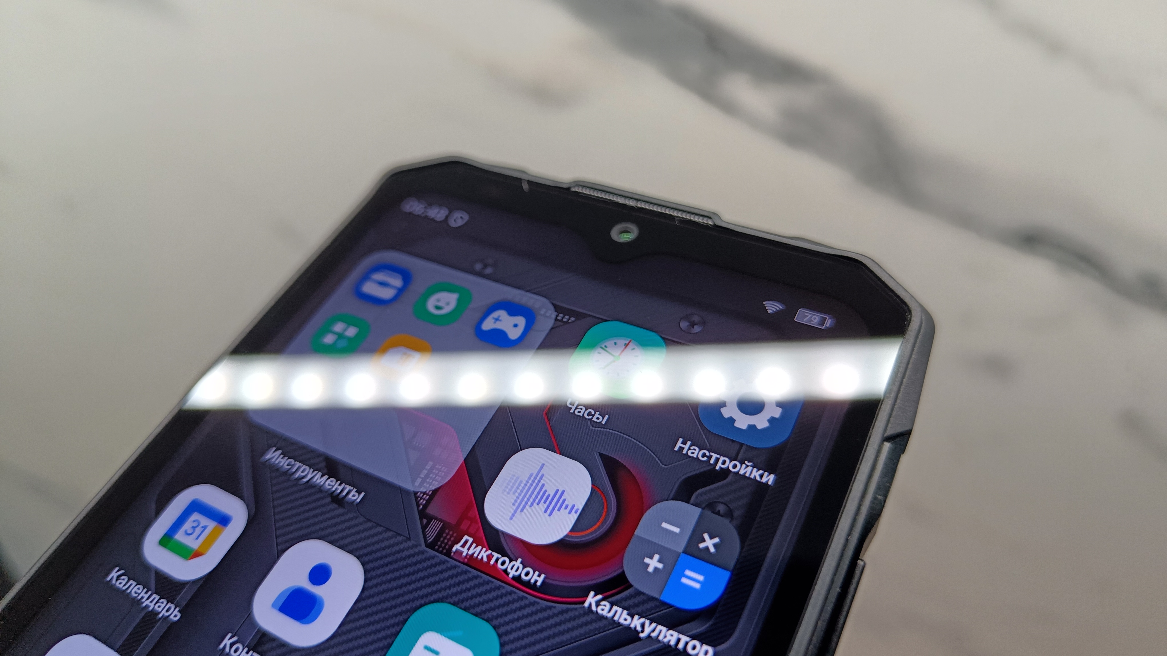 Экран остался прежним. Это 6,59 дюймовая IPS матрица с разрешением 1080*2408 точек. Максимальная частота обновления до 120 Гц. Плотность пикселей чуть более 400 dpi. Яркости экрана хватает, но в солнечный день может показаться, что слегка тускловат. На экране защитное стекло Gorilla GLass, но класс не указывается. Селфи камера на 32 Мп с матрицей Samsung S5KGD1, нет автофокуса и стабилизации. Рамки вокруг экрана в пределах 3,5-4 мм, что свойственно защищенным гаджетам.
