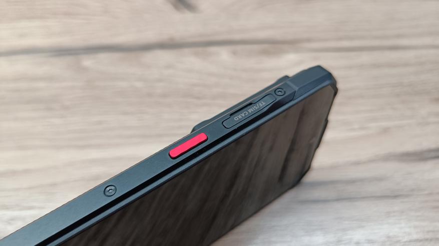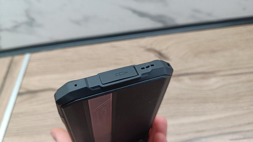 Корпус из пластика, но по боковой грани есть накладка из жесткой резины, а по углам утолщения. Смартфон выдерживает использование в дождь или даже погружение в воду, так как сертифицирован по стандартам IP69K и MIL-STD-810.