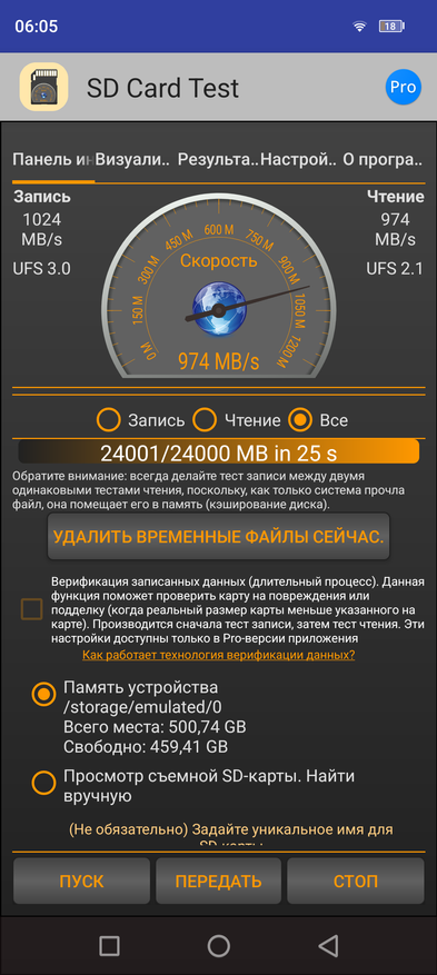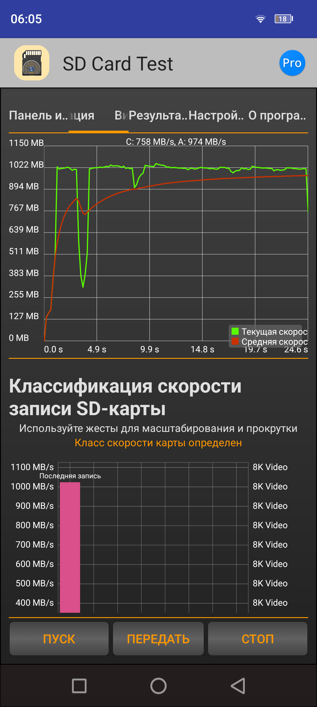 Тест памяти. Напомню, что в обновленной версии флеш-накопитель стал в 2 раза больше и чуть повысилась производительность на запись и чтение файлов.