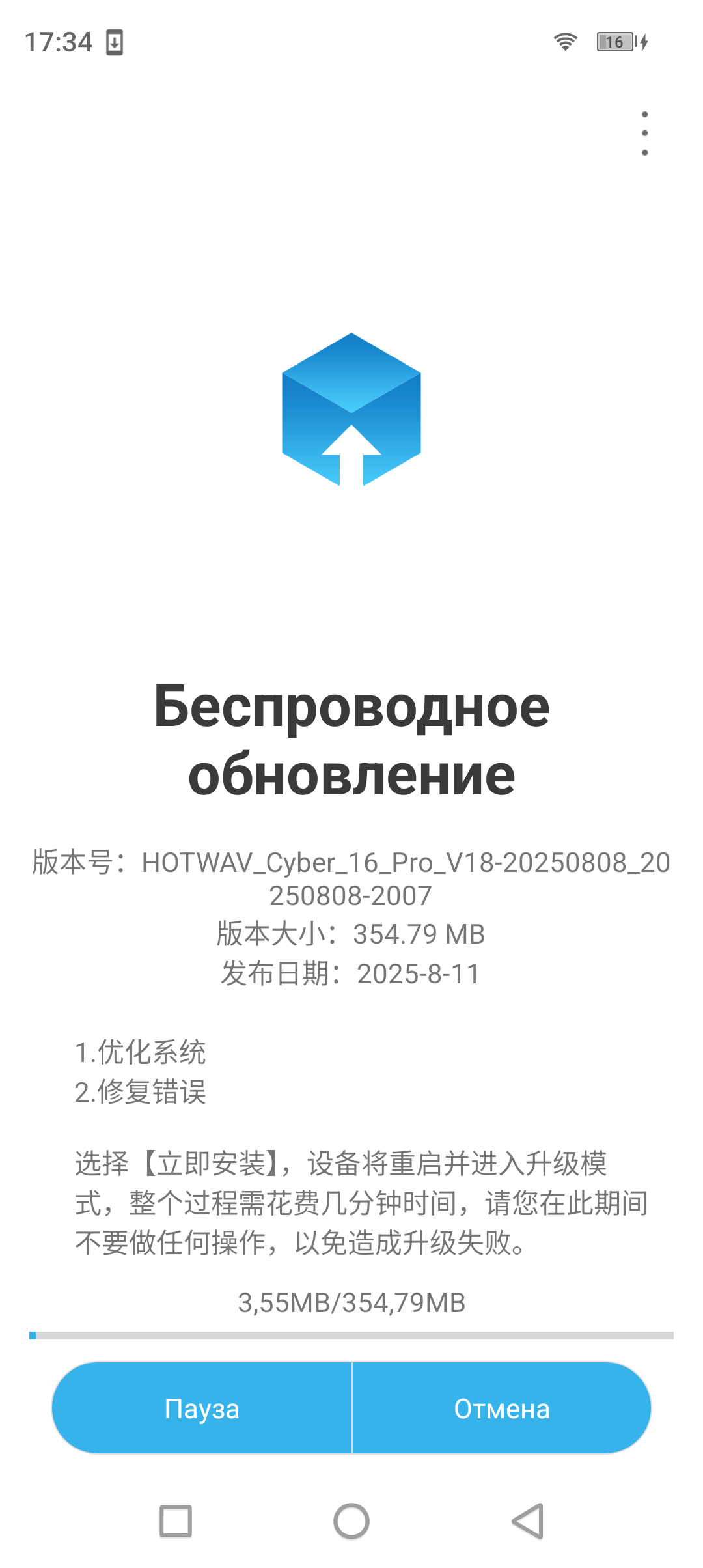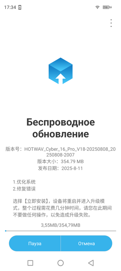 В смартфоне предустановлена операционная система Android 15. За пару недель было одно исправление. Объем загружаемого файла был более 300 Мб, но производитель не указал на изменения.