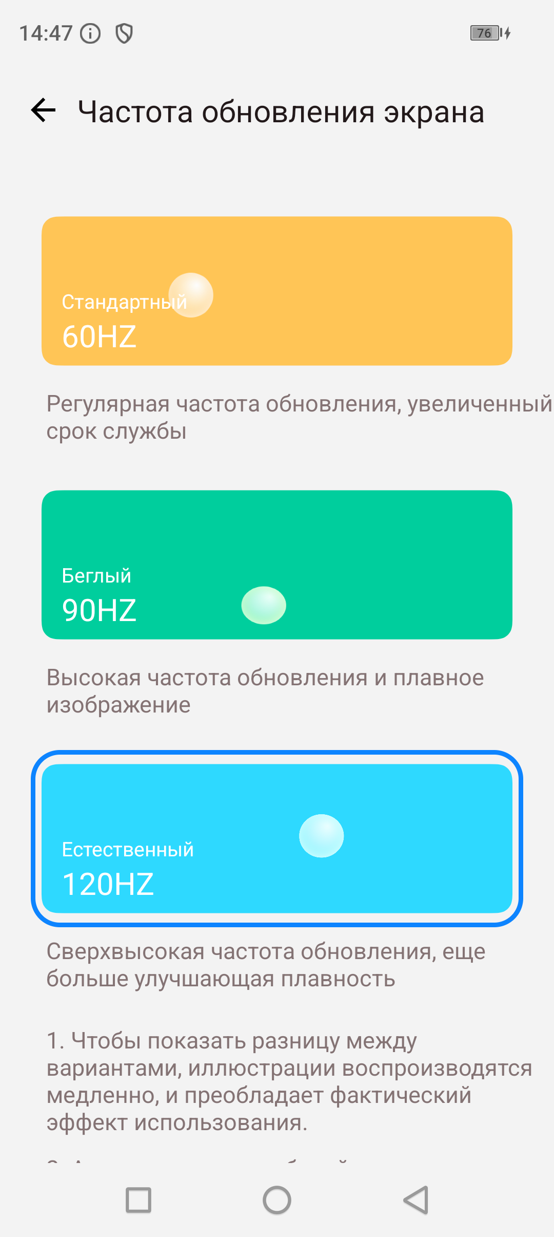 В настройках смартфона есть несколько пунктов, которые отвечают за частоту обновления, здесь ее можно выставить на 120 Гц. Настроить дополнительную кнопку или экран.