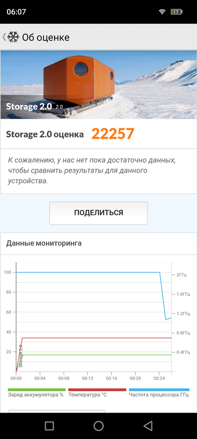 Также сделал тестирование процессора на стрессовые нагрузки. Смартфон с легкостью прошел 15 минутный тест, были 2 незначительных провала до 80%, но не более. При этом максимальное значение GIPS было 180, а минимальное 145, а у предыдущей модели 159 и 139 очков соответственно.