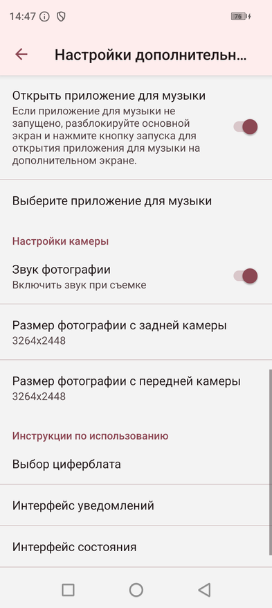 На тыльный экран смарфона может выводиться различная информация. По умолчанию это активация музыкального плеера, помощь при фото или видеосъемке, часы с календарем и компас. В памяти смартфона есть 6 вариантов циферблатом, а вот свой создать возможности нет. Активация второго экрана возможна при перевороте смартфона. Таким образом, если смартфон будет лежать на основном экране, то на второй будет выводиться вся необходимая информация по звонкам или уведомлениям. Есть настройки вариантов управления по свайпам.
