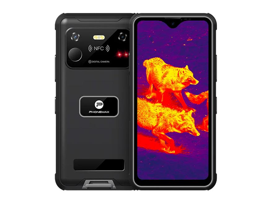Китайская компания Phonemax, специализирующаяся на выпуске защищённых OEM-гаджетов, представила новый смартфон с обозначением R4GT. Новинка выделяется своим компактным корпусом (121 x 59,2 x 18.33 мм, 190 грамм), в котором нашлось место не только для средне-бюджетной начинки, но и для трёх камер, одна из которых — термальная на 0,05 МП. Кроме тепловизора сзади также находятся основной датчик на 64 МП и модуль ночного видения на 20 МП с инфракрасной подсветкой.