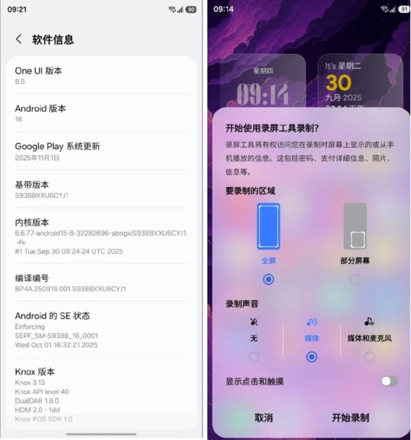 В своём сообщении инсайдер представил снимки экрана с информацией о версии прошивки, подтверждающие подлинность One UI 8.5, и поделился информацией о её нововведениях. Пользователю будет предоставлен выбор: записывать весь экран целиком или только выделенную область. Ожидается, что последний вариант окажется полезным для фиксации работы конкретного элемента интерфейса или приложения, что избавит от необходимости в последующей обрезке и монтаже видео.