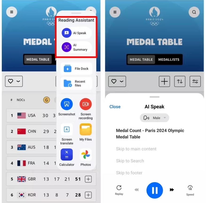 AI Speak — озвучивает пользователю статьи по найденным через поиск в барузере и ряде других приложений. Есть возможность изменять голос озвучки и скорость речи. На выбор предложены как женские, так и мужские тембры голоса.