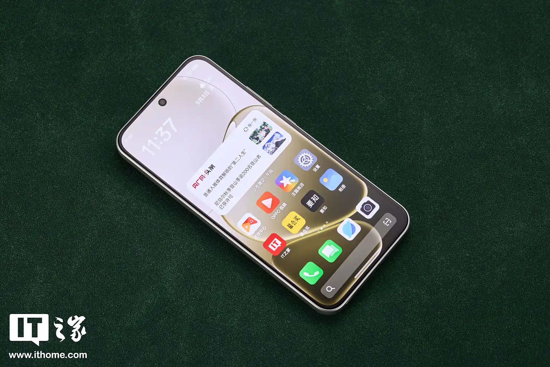 Корпус смартфона выполнен в дизайне «текущая вода производит золото» с ярко-золотистой текстурой и обработкой блестящим песком. При освещении поверхность создает визуальный эффект, напоминающий океанские волны в лучах восходящего солнца.