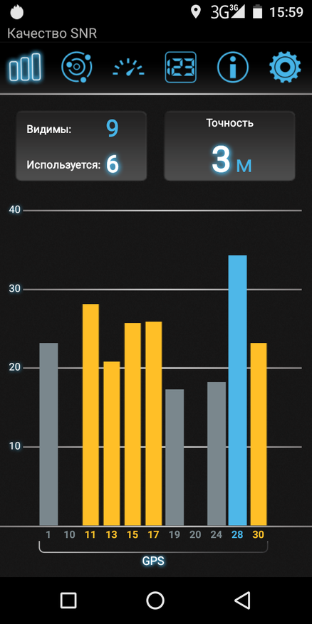 Навигация присутствует только в виде поддержки GPS спутников, поэтому количество спутников в соединении, своим количеством не поражают. В обычный зимний день, смартфон за 12 секунд нашел 9 спутников, с 6 из которых имел активное соединение. Точность позиционирования 3 метра. Реально проверил навигацию в гугл картах, в пешеходном режиме — навигатор нормально довел то точки назначения.