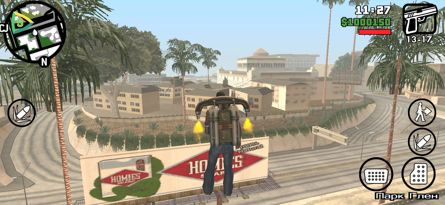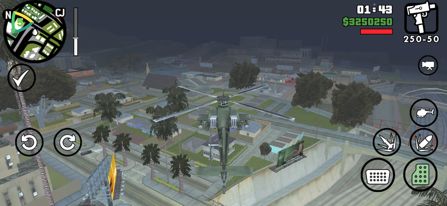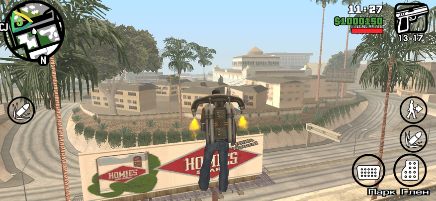 Несмотря на не очень производительной железо, играть на WP60 неожиданно приятно. Большой экран создаёт эффект погружения, а низкое разрешение снижает нагрузку на систему. GTA San Andreas работает стабильно, без заметных лагов, но при повышенни графических настроек вылетает через 3-5 минут игры. Поэтому лучше всего играть на стандартных настройках — тогда полет нормальный.