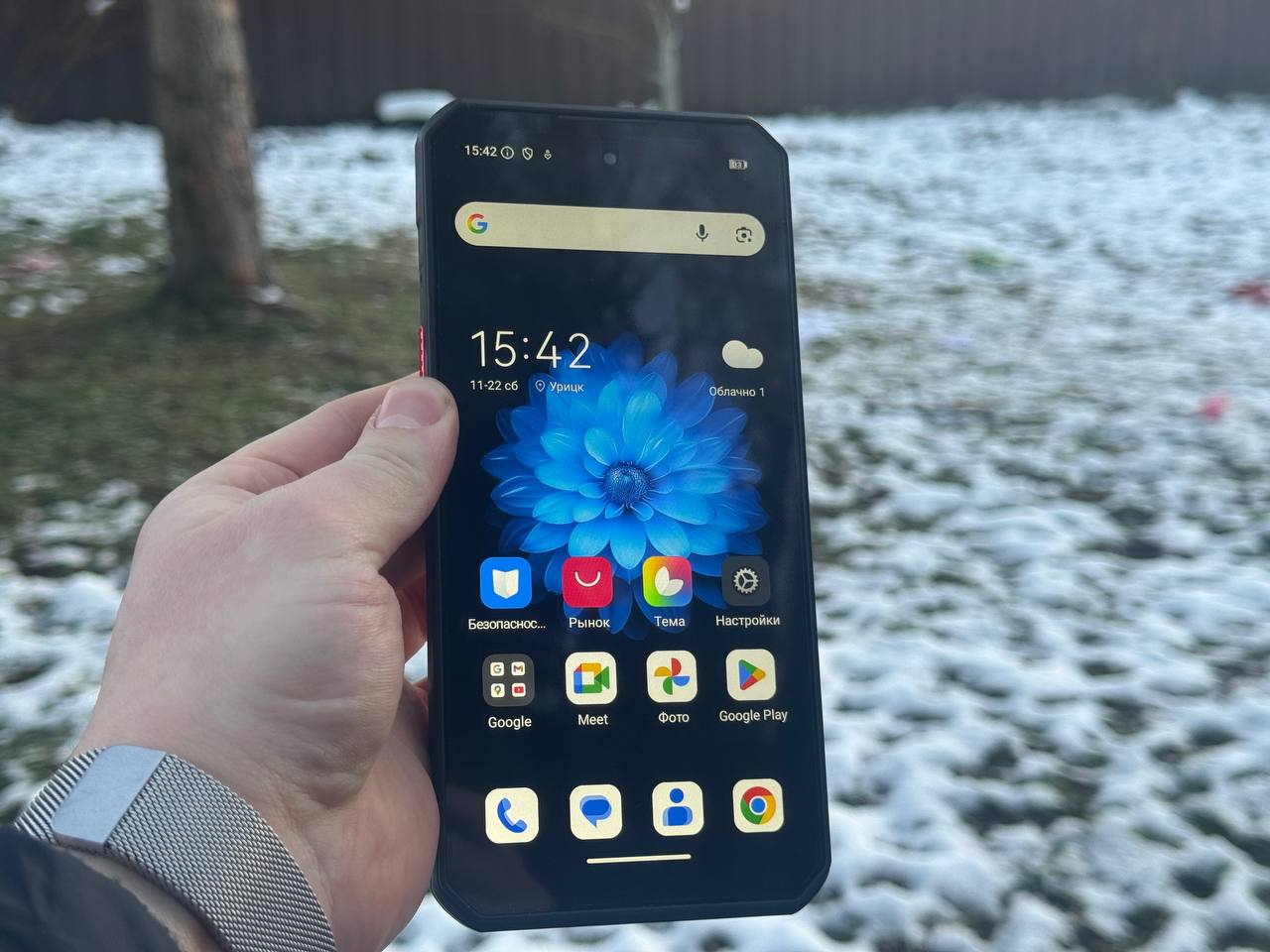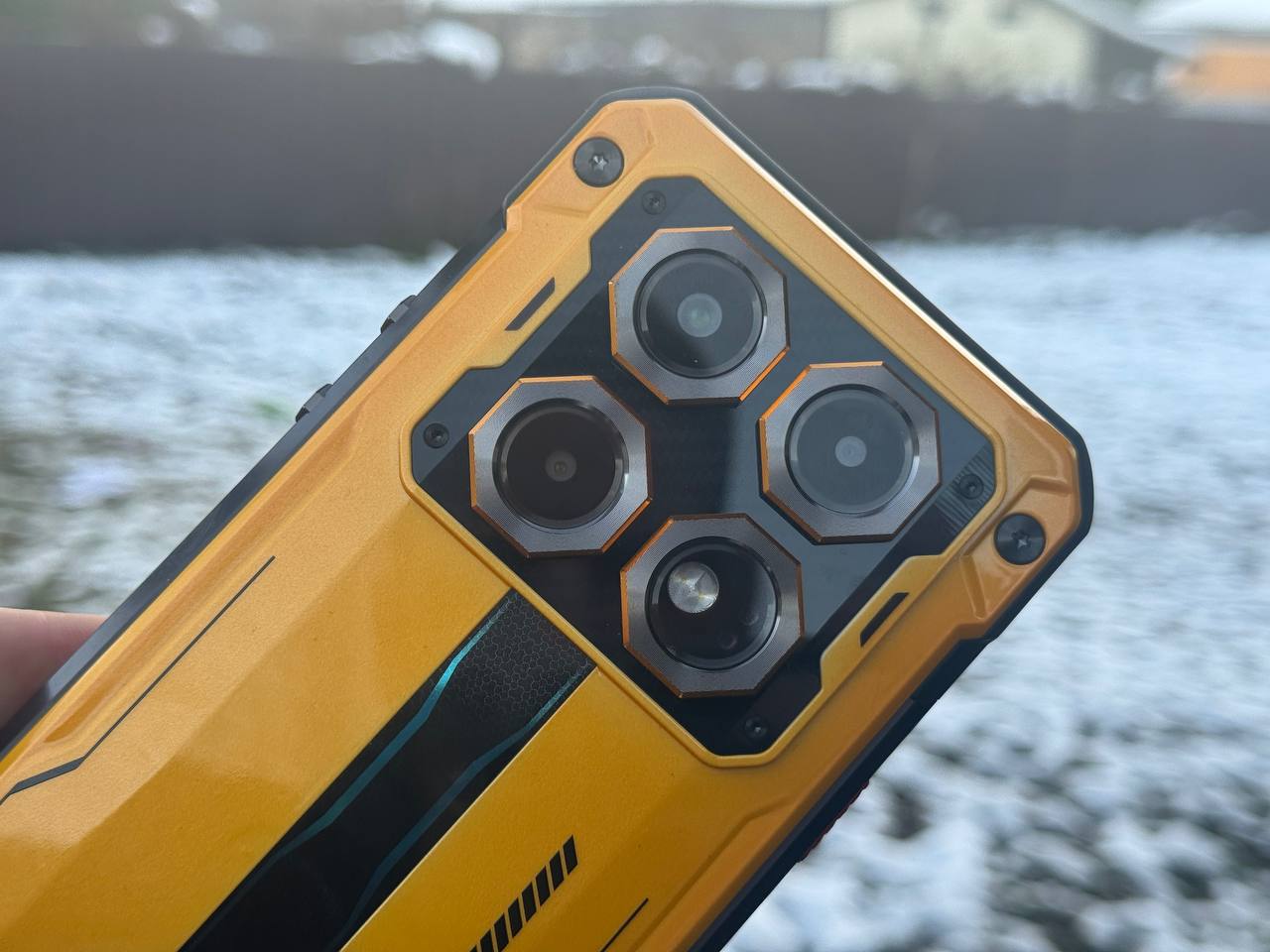 Сзади WP60 смотрится действительно эффектно. Крышка переливается на свету, создавая ощущение дорогого устройства, и в руке смартфон выглядит солидно. Камерный блок включает основной сенсор на 108 МП, ночной модуль на 8 МП и макрокамеру на 2 МП. Это хорошо знакомая связка. Основная камера днём снимает вполне предсказуемо, но с ограниченным динамическим диапазоном. Макро окажется полезна для съёмки мелких объектов.