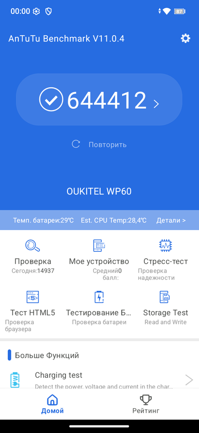 При этом в реальных задачах WP60 вполне справляется не только с серфингом, мессенджерами и видео, но и с более тяжёлыми приложениями, многозадачностью и играми с умеренными настройками графики без ощутимых просадок.
