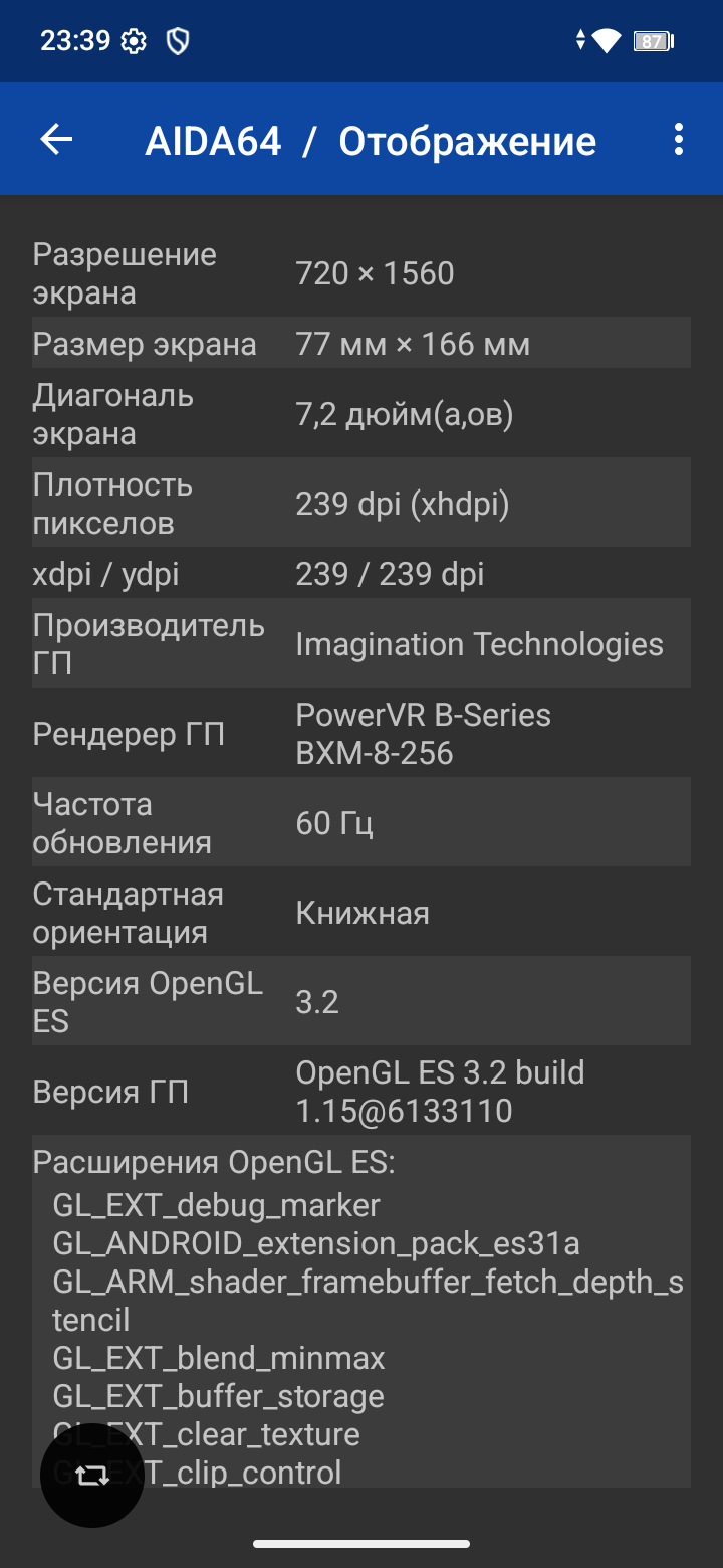 Основную часть лицевой панели занимает огромный 7,2-дюймовый IPS-дисплей. Это действительно большой экран, благодаря которому смартфон ощущается скорее как компактный планшет. Разрешение при этом всего 720x1560 точек, и на такой диагонали это вызывает вопросы. Конечно, невооруженным глазом это не заметно, но осадочек остается. Частота обновления — до 120 Гц