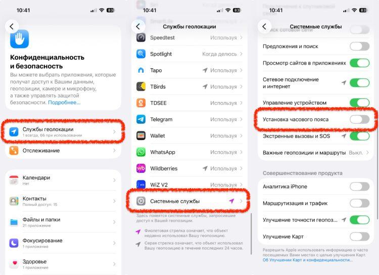 После этого iPhone перестанет сам менять часовой пояс по координатам.