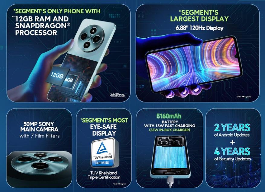 Как сообщается, компания POCO запустила в Индии новый смартфон M7 5G, ориентированный на пользователей, ищущих баланс производительности и доступности. Устройство оснащено 6,88-дюймовым HD+-экраном с частотой обновления 120 Гц и пиковой яркостью 600 нит, что обеспечивает плавную прокрутку и комфортный просмотр даже при ярком освещении. Защита от синего излучения и мерцания подтверждена сертификатами TÜV Rheinland.