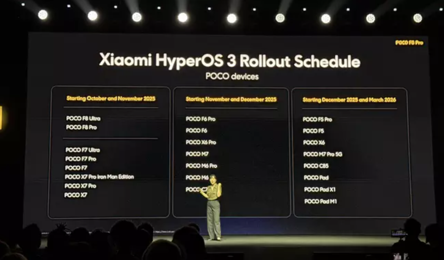 Кроме этого, Xiaomi заявила о росте стабильности системы, обновлённом дизайне иконок и графических элементов, а также о появлении динамических обоев, созданных при помощи ИИ. Судя по показанным на презентации F8 материалам, вот список устройств POCO, которые получат HyperOS 3 по всему миру.