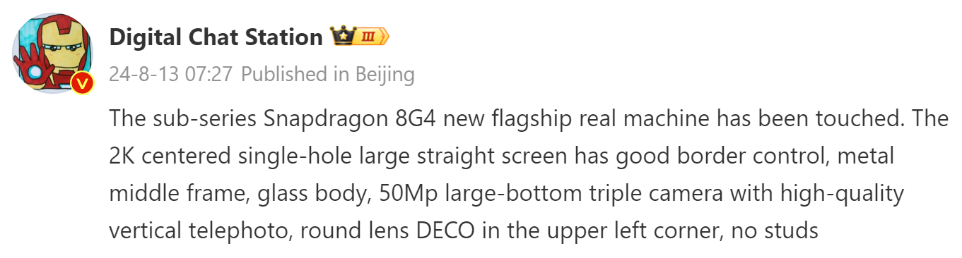 Под капотом Redmi K80 Pro будет работать чипсет Snapdragon 8 Gen 4, что делает его одним из первых телефонов в мире, оснащенных этим процессором.