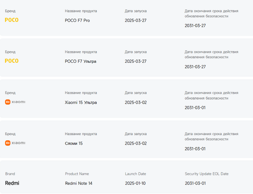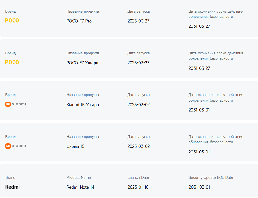 Ранее аналогичная поддержка была предоставлена для смартфона Redmi Note 14. На сегодняшний день под расширенное обновление попадают уже пять новых моделей: