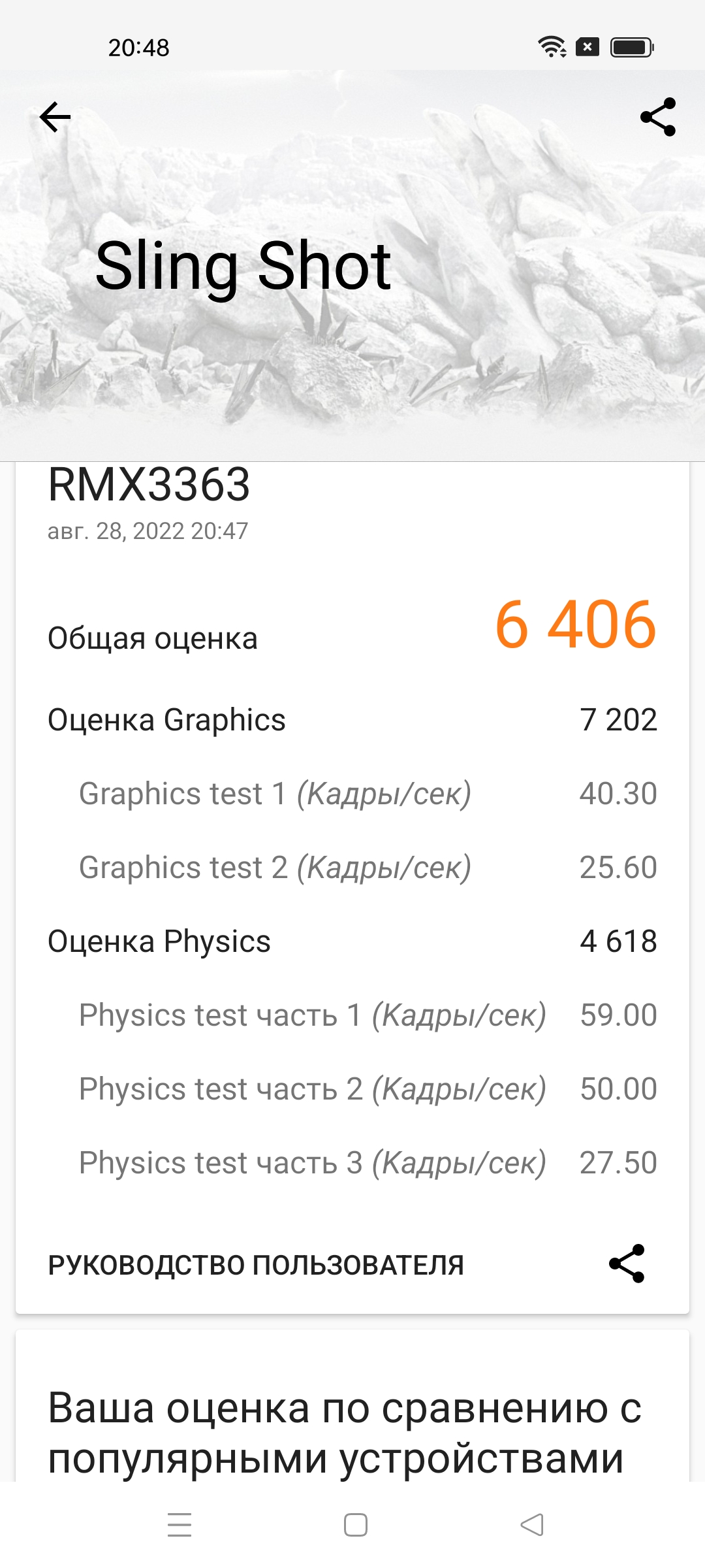 Следующим пойдёт тест полегче — Sling Shot. Уж здесь-то этот смартфон точно должен показать себя молодцом!