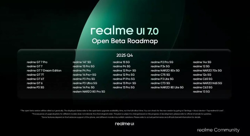 Первые сборки появятся в четвёртом квартале 2025 года, но время запуска для каждой модели может отличаться. Например, Realme GT 7 уже получает бета-версию, а Realme 14x 5G получит релиз чуть позже.