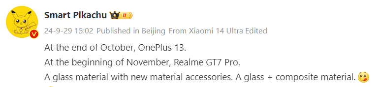Другой инсайдер, Smart Pikachu, настаивает на релизе в начале ноября. Xu Qi Chase (директор по маркетингу в realme) в соцсетях также намекнул на то, что GT7 Pro выйдет до наступления декабря. Исходя из ожидаемой даты релиза, можно полагать, что GT7 Pro будет поставляться с Android 15 на борту. Уже известно, что GT7 Pro будет представлен двумя моделями — RMX5010 для внутреннего китайского рынка и RMX5011 для всего остального мира.
