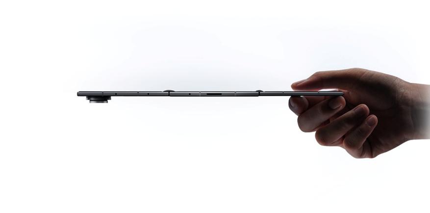 Смартфон выполнен в корпусе с титановым шарниром и алюминиевой рамкой, защищён по стандарту IP48 от воды и механических воздействий. Толщина в сложенном состоянии составляет 12,9 мм, вес — 309 граммов.