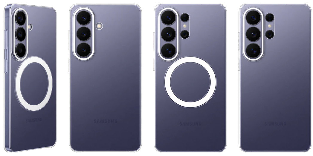 Согласно утечке, Samsung готовит для серии Galaxy S26 несколько вариантов прозрачных чехлов — как с магнитами, так и без них. Наличие немагнитных чехлов в официальной линейке аксессуаров свидетельствует о том, что магнитная зарядка станет опциональной функцией, доступной через дополнительные аксессуары, а не базовой возможностью устройств.