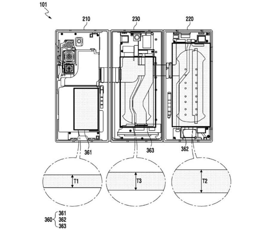 Недавно обнаруженные патентные изображения намекают на то, что смартфон Samsung с тройным складыванием Galaxy Z TriFold будет оснащен тремя батареями.