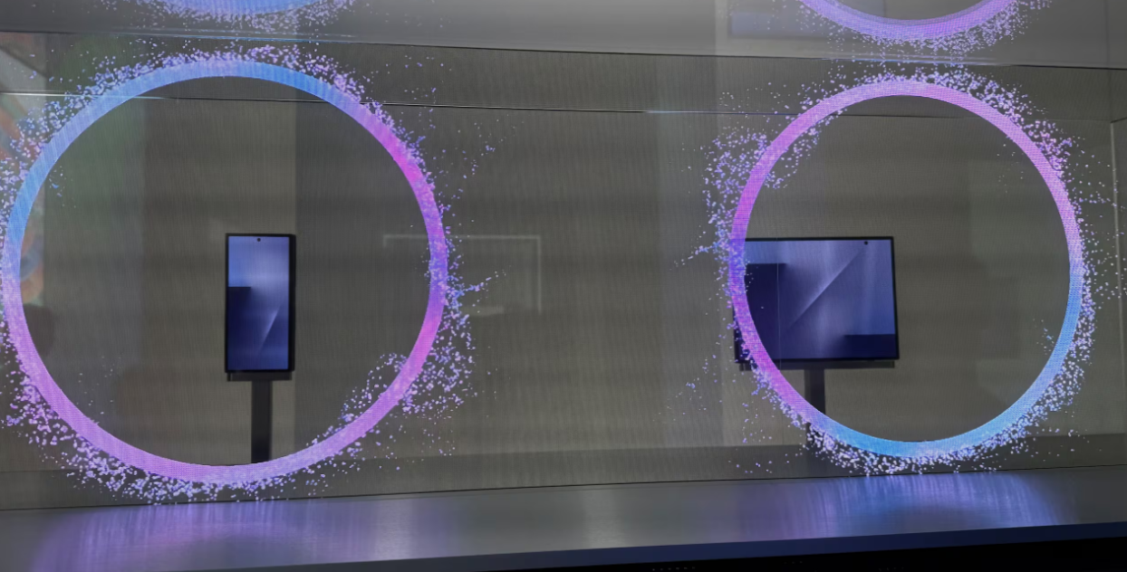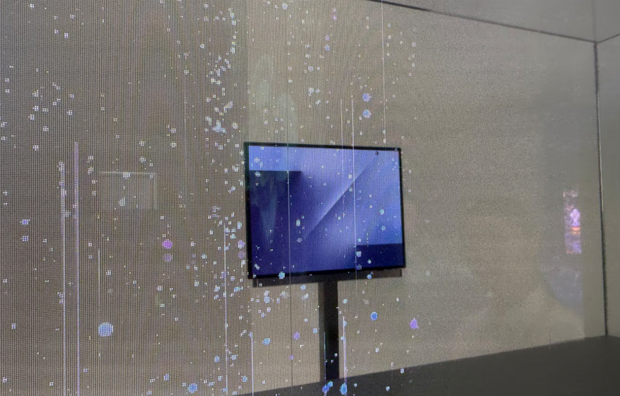 Два образца нового складного телефона разместили за стеклянными витринами. Один находился в разложенном состоянии, второй — в сложенном. Посетители выставки не получили возможности взять гаджеты в руки или протестировать их функционал. Журналистам также не предоставили доступа к детальному осмотру устройства.