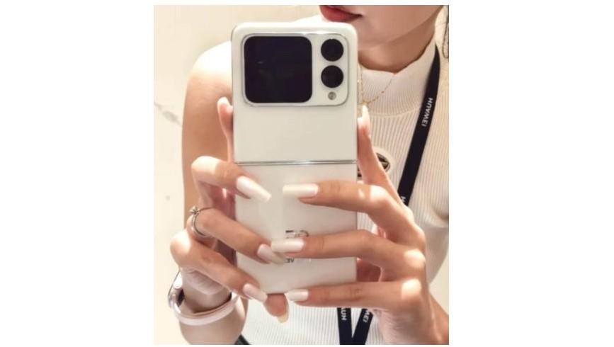 На фотографиях новинка имеет белый цвет корпуса, также заметны внешний дисплей квадратной формы со скругленными краями и два модуля камер рядом. На второй части смартфона расположили название производителя и линейки устройств. На правом торце находится кнопка включения/выключения со встроенным дактилоскопическим сенсором и качельки регулировки уровня звука. На других снимках Nova Flip представлен дополнительно в зеленом и розовом тонах.