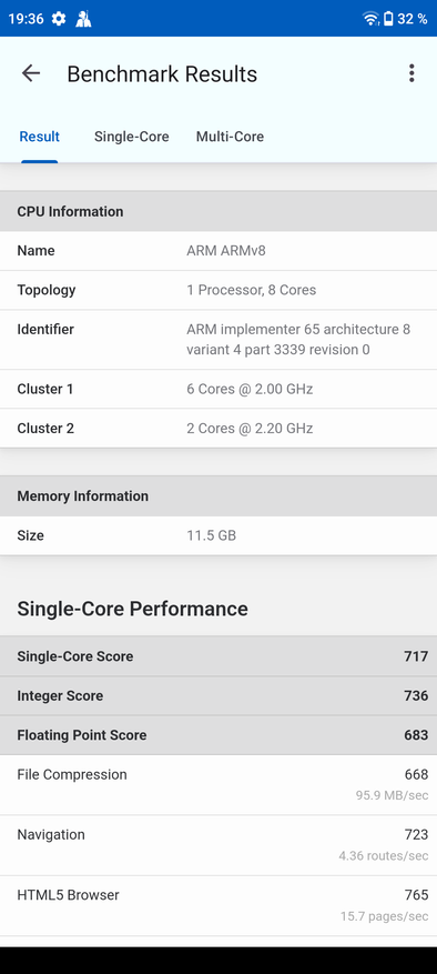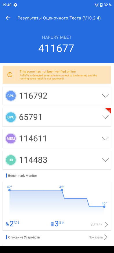 В GeekBench смартфон набирает вполне предсказуемые для этого процессора средние значения баллов, соответствующие базовому игровому уровню.