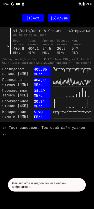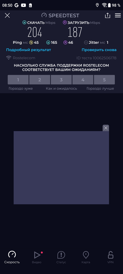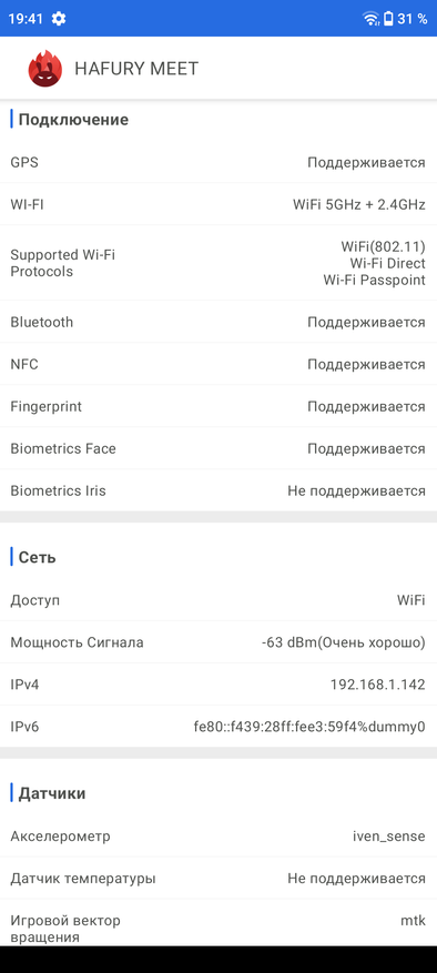 За быстродействие отвечает еще скорость чипов памяти. Антуту исторически показывает какие-то невероятные скорости, я больше доверяю втором бенчмарку, который отображает вполне бюджетные 400МБ/с. По спутникам все прекрасно. Смартфон на холодный запуск нашел около 50 спутников и принялся использовать 30 из них, показав точность позиционирования 2 метра. По Wi-Fi прием стабильный, в обоих диапазонах по квартире я ходил по всем комнатам и большой просадки не обнаружил. В 5ГГц скорость соединения достигают бюджетные 200Мбит/сек. Это не флагманский результат, но просмотреть даже 4К контент позволит. Прием связи вполне стабильный, поддерживает все требуемые банды. 4G в регионе дает скорости около 10-15 МБ/с, что считается максимумом для моего провайдера. На даче интернет тоже есть, но не быстрый, так что уровень вполне средний. Датчик отпечатков пальцев подэкранный, работает четко, но не очень быстро. NFC проверял в связке с MirPay. Работает в пятёрочке и магните.