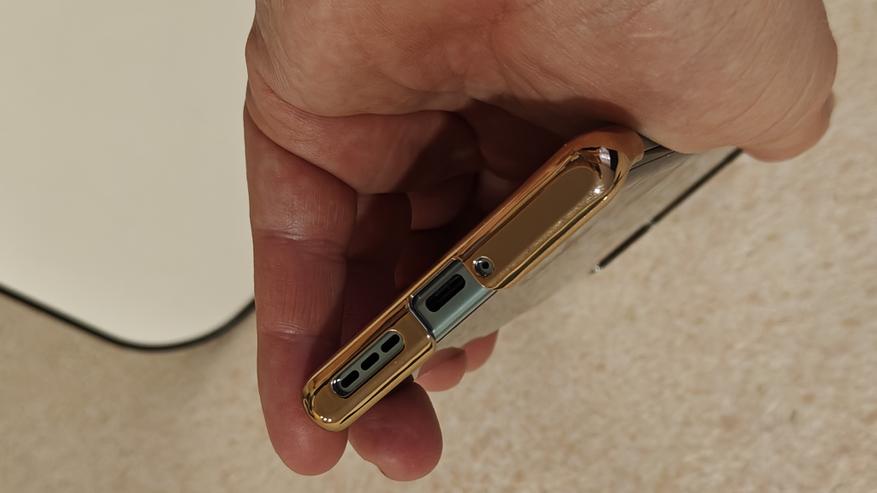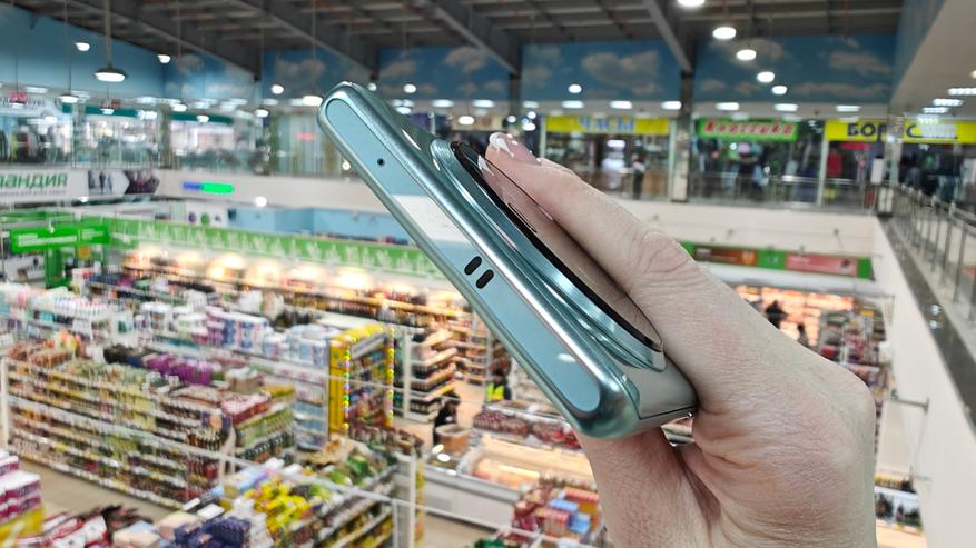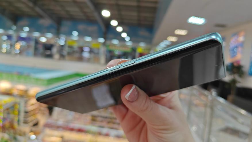 Торцы устройства ровные, на верхнем торце есть отверстия микрофона и непонятные два элемента, значения которых для меня не ясны, это могли бы быть глазки ИК пульта управления, но я его не нашел. На нижнем торце лоток для установки сим-карт, отверстие микрофона, Type-C разъем и отверстия микрофона. На левом торце разместили кнопки управления громкостью, а на левом кнопка блокировки/разблокировки, которая украшена зеленой полосочкой.