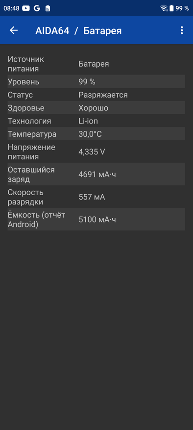 Смартфон может воспроизводит без подтормаживаний видео до 1440p60 на Youtube. За 1 час воспроизведения видео 1080 потратил 8 процентов батареи. Заряжается при помощи зарядки на 33Вт за 1час 20 минут. Тестер показал емкость батареи около 4900мАч.