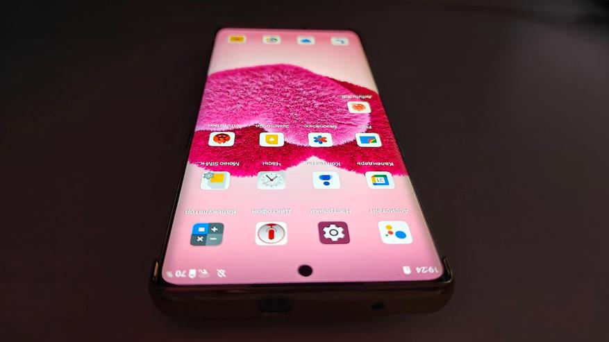 Вообще задняя стенка глянцевая, под стекло, а узор напоминает узоры мороза на стекле. Края корпуса скругленные, выглядит аппарат действительно под флагман.