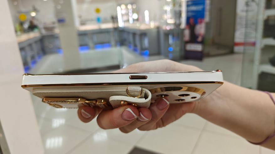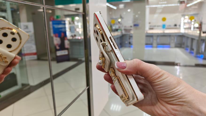 | Особенности | Оригинальный чехол с зеркалом и цепочкой, изогнутый дисплей |