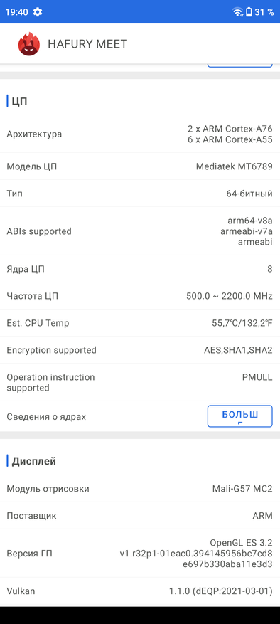 В итоге получился смартфон, ставка которого сделана на его внешний вид. Тут симпатичный как стеклянный корпус, и выглядящее по-флагмански изогнутое стекло. Используется реально хороший амолед дисплей, правда режима AOD нет. Процессор начального игрового уровня позволяет играть в нетребовательные игры. Автономность средняя, на рабочий день активного использования точно хватит. Камера звезд с неба не хватает, но сделать хорошее фото у вас получится точно. К портретам есть претензии. Вибрация обычная, динамики моно. Вполне стабильный середнячок, который выделяется внешним видом и шикарными чехлами. За минусами медленный автофокус, не полная локализация меню и камеры, нет AOD. На него сейчас неплохая цена на OZON, строго рекомендовать к приобретению не буду, каждый выбирает сам и сам решает, стоит ли это этих денег. Но то, что смартфон выделяется на фоне многих вариантов это точно. На aliexpress, кстати, он дороже. А на официальном сайте можно посмотреть его преимущества и воду про философию модели и линейки Hafury