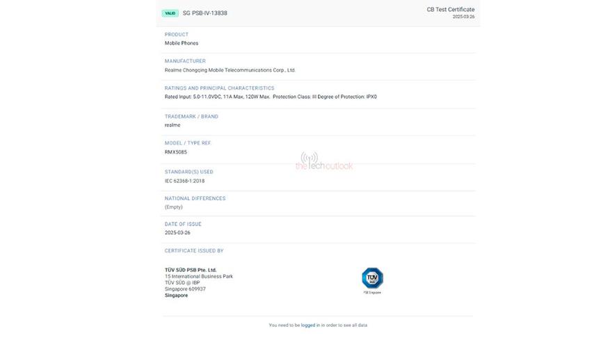 В материале сайта отмечается, что компания Realme уже выпустила Realme GT 7 Pro и Realme GT 7 Pro Racing Edition, и помимо Realme GT 7 на базе чипа MediaTek Dimensity 9400+. Теперь стало известно, что бренд также работает над моделью Realme GT 7T. Это предстоящее устройство с номером модели RMX5085 теперь получило сертификацию TUV SUD с номером сертификата SG PSB-IV-13838.