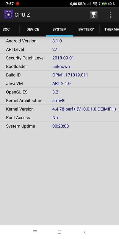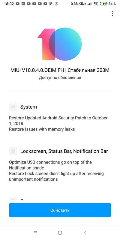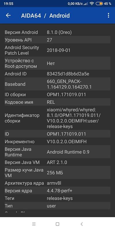- Операционная система: Android 8.1 (прошивка MIUI 10,0,4,0)